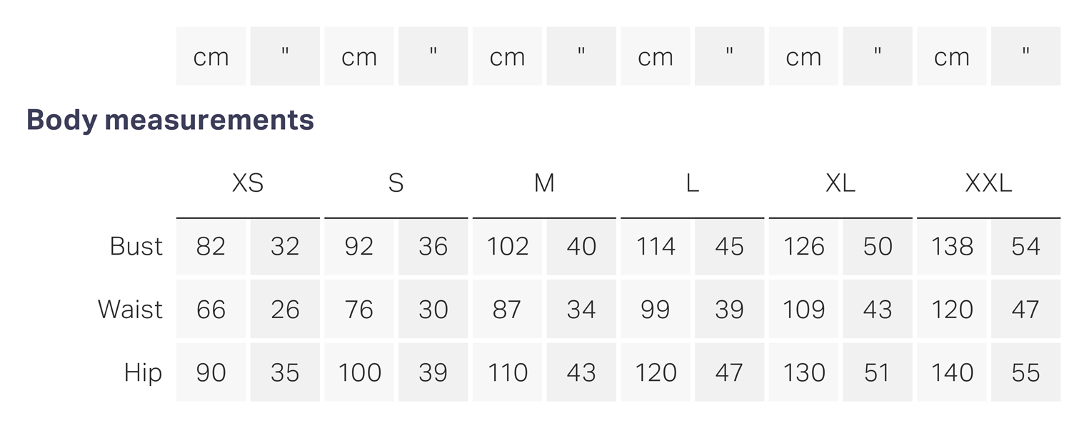 It is vitally important, when sewing your own clothes, to take accurate measurements of your body, and not rely on the sizing you expect to buy on the high street. For this pattern we have opted to use sizing XS – XXL, which approximately covers UK sizes 8 – 24. Measure yourself first to choose the right size for you!